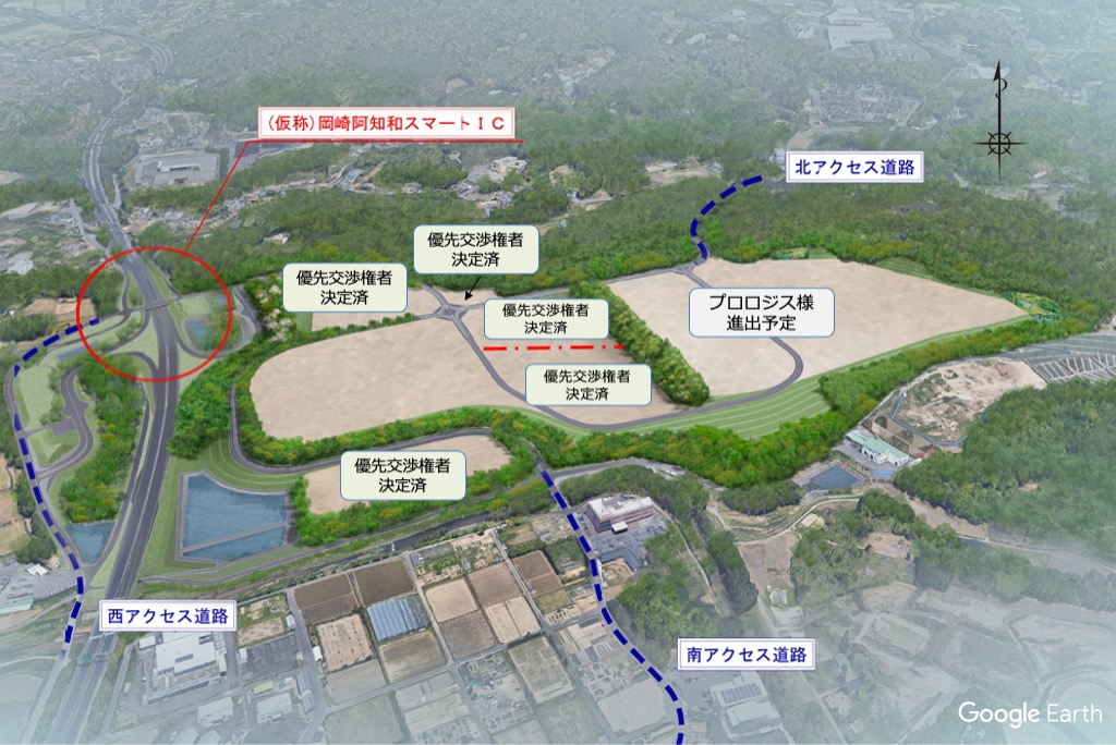 | 高速道路アクセス | 東名高速道路:岡崎ICから約6km、(仮称)岡崎阿知和スマートIC直結 伊勢湾岸自動車道:豊田東ICから約6km |